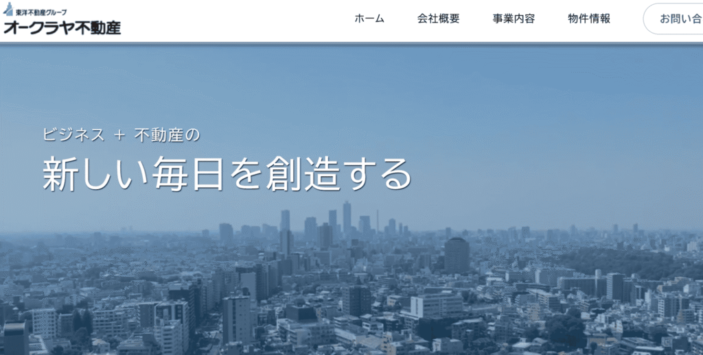 オークラヤ不動産株式会社は、オフィスビル・レジデンス・店舗・倉庫などの「事業用不動産」を主対象に、売買・賃貸借の仲介やコンサルティング、不動産投資・賃貸事業までを手がける不動産会社です。